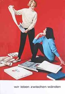 | |  | | Bunte Blumenwelt - Kundenzeitschrift der FLEUROP GmbH - Thema z.B.: "Blumenfenster für jedermann" | | tapisom-Teppichboden - "...und die Reinigung? Bei "tapisom" so leicht wie Händewaschen!" | | Besmer Teppichbodenfabrik Mertens KG - "Ihr Wunsch-Teppich ist auch dabei... Wir haben wieder Wohnen gelernt. Häuslichkeit wird heute groß geschrieben. Vor allem das Fernsehen hat dazu beigetragen, daß wir die Gemütlichkeit eines schönen Heims mehr schätzen." |