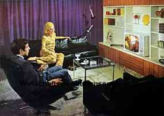 | | |  | | | | | | "Eine Schrankwand der unumstrittenen Spitzenklasse, 360 cm breit und 200 cm hoch. In makellosem Nußbaum. Mit allen erdenklichen Extras wie Bar- und Fernsehfach, indirekter Beleuchtung, Stereoblenden und weiteren Vorzügen der Inneneinteilung. - In dieser Garnitur sitzen Sie wie in Abrahams Schoß. Imposant die wuchtige Form, beeindruckend die leuchtenden Farben des erlesenen Acryl-Velours." | | |