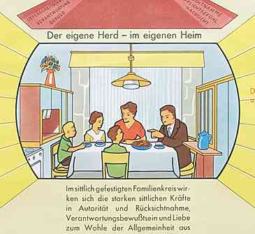 | Privatfoto, rückseitig handschriftlich: "Heinz, Hannel, Christa und Hans-Joachim Weihnachten 1954 im Flüchtlingslager" | | "Ihr Heim - die Erfüllung ihrer Sehnsucht", Bausparkassenwerbung (1955)