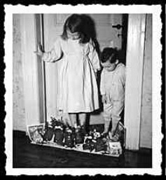 | | Mädchen mit ihrem Weihnachtsgeschenk, einem Standkaufladen der Firma Kibri