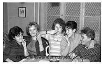 | | | | Fröhliche Runde mit Eierlikör - voll im Trend: hochtoupierte Haarfrisuren | | Gemütliche Raucherinnen-Runde