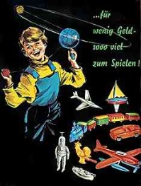 "Alles aus Plastic: haltbar, hygienisch, farbenfoh, modern"   Spielzeug aus Hostalen