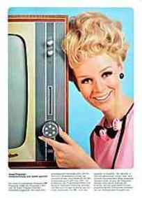 Graetz Radio Fernsehen - "Lady: Fernsehen - auch für unterwegs! Wie oft locken Sonne und Natur zu einem Wochenendausflug. Wie oft möchte man gerade an diesem Tag das Fußballspiel "seiner" Mannschaft sehen. Lady, das tragbare Transistor-Koffergerät für Netz- und Auto-Batterie-Anschluß, erfüllt Ihnen beide Wünsche: Ausflug und Fernsehen!"   Graetz Radio Fernsehen - ""Rotes Licht" für "Schwarzseher" - Und wenn Peter noch so böse ist: der "Progamat S" bleibt zu! Weil Mutti abgeschlossen hat: "Krimis sind nichts für Dich, lies lieber ein Buch!" Punktum! Und Mutti hat recht. Nicht alles ist für Kinderaugen bestimmt. Deshalb sind viele Graetz-Fernsehgeräte abschließbar."