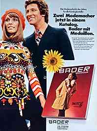 | | "Zwei Modemacher jetzt in einem Katalog. Bader mit Medaillon." | | | | Kaufhausprospekt "An alle Haushaltungen" - "Geschenke beizeiten kaufen"