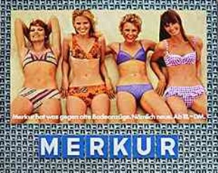 | "Merkur hat was gegen alte Badeanzüge. Nämlich neue. Ab 18,-DM." - Bademoden-Prospekt
