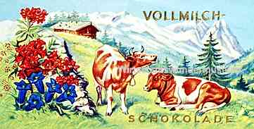 |  | |  | | Stollwerck - "Scharlachberg Meisterbrand Weinbrand-Bohnen" (1956) | | Suchard Jubiläum - "Hochfeine Sahne Schokolade"