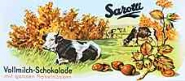 | | Sarotti "Vollmilch-Schokolade mit ganzen Haselnüssen" (1956)