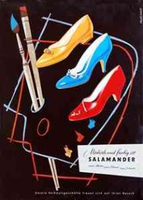 | | Salamander "Gehbehagen" | | Heinzelmann Orchidee - "Die modisch führende Badebekleidung" - "Nur echt mit der Plombe" | | Rei "zum Frühjahrsputz" |